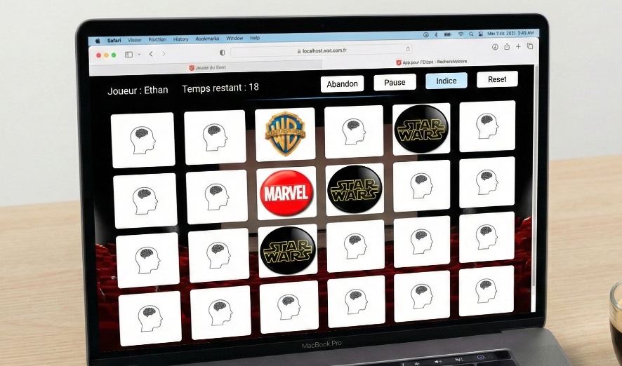 Jeu de mémoire pour 2 joueurs, réalisé en VB.NET avec gestion du plateau, comparaison des cartes, affichage du score et fin de partie automatique.